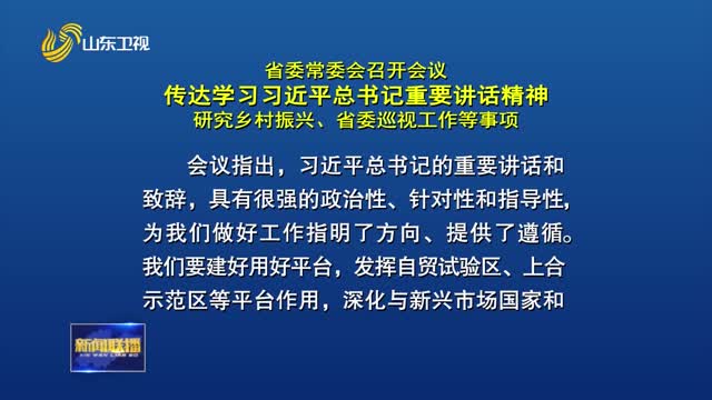 省委常委会召开会议 传达学习习近平总书记重要讲话精神 研究乡村振兴、省委巡视工作等事项