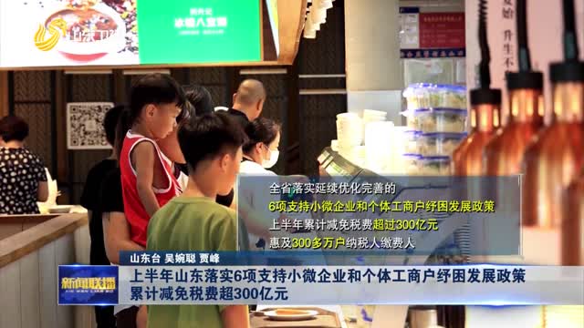 上半年山东落实6项支持小微企业和个体工商户纾困发展政策 累计减免税费超300亿元【权威发布】