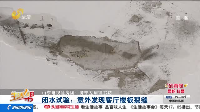 【山东电视验房团:济宁龙翔御书坊】闭水试验:意外发现客厅楼板裂缝