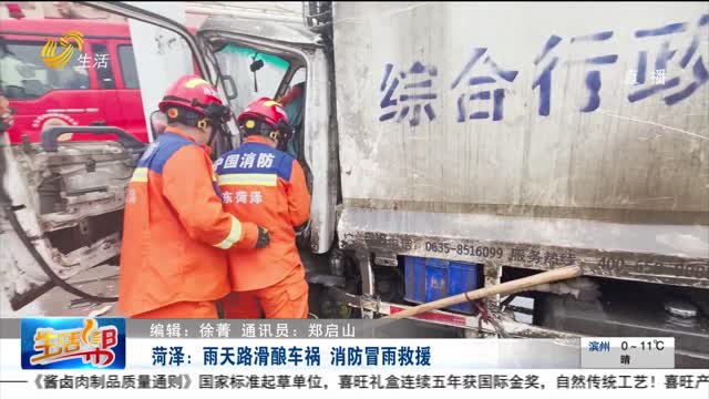 菏泽:雨天路滑酿车祸 消防冒雨救援